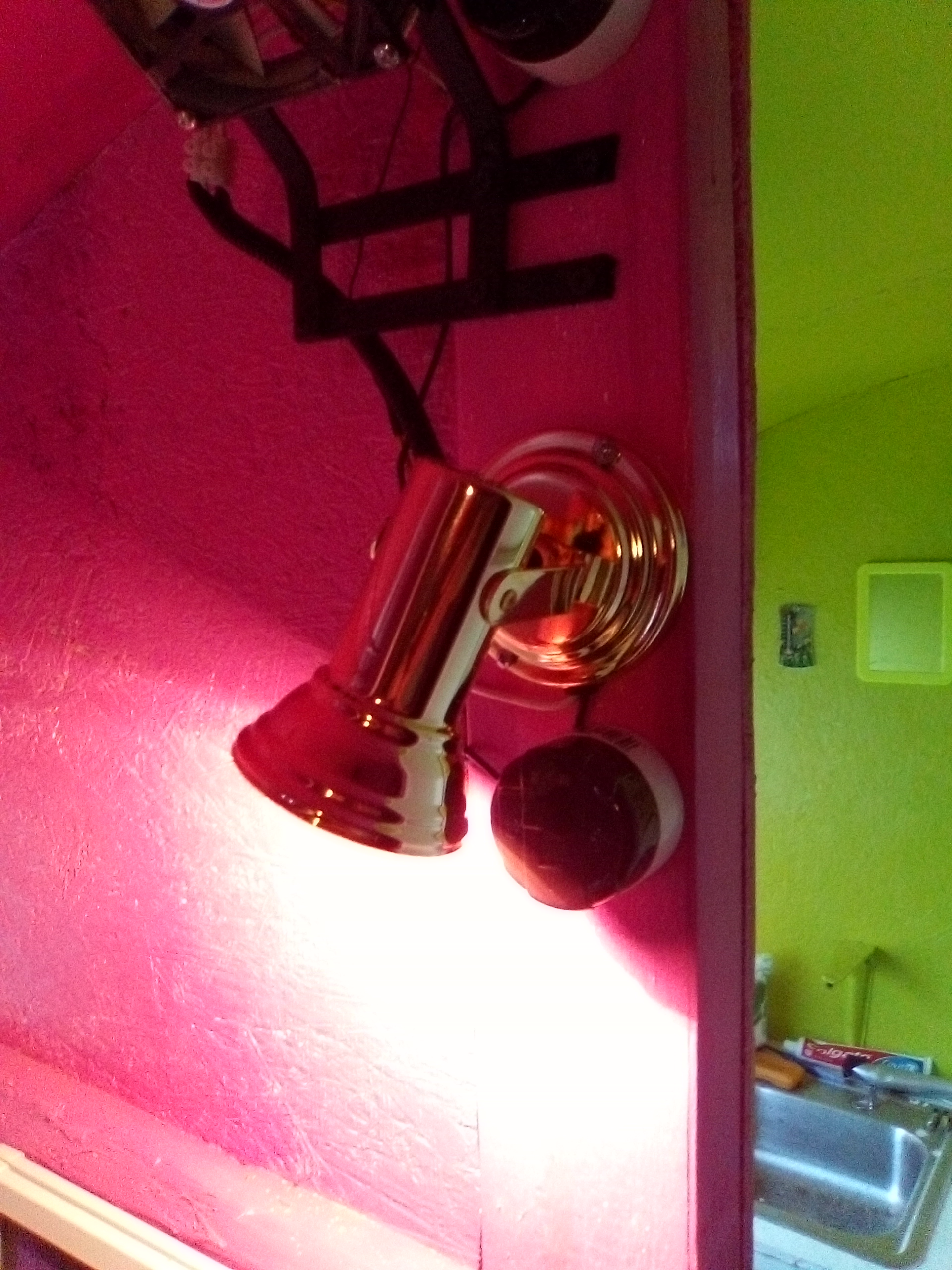 In the bedroom I installed a new lighting unit. This replaces my earlier DIY lighting units. I wanted to switch from LED to halogen lighting and this unit will take halogen. I just find LED lighting tends to fail so often that it's more of a joke than a real source of light. It's not just the 12v stuff but the 120v light bulbs just don't last. The LED flashlights and lanterns last about one set of batteries maybe two before they bite the dust. LED is just not worth the time or money. Given that my electricity comes from solar, nobody can argue that I'm creating greenhouse gasses. Indeed, incandescent lamps are just plaster, glass and tungsten - all very easy to recycle and all very environmentally friendly. LED lights are full of nasty toxins and will not break down. There's no known recycling method either.